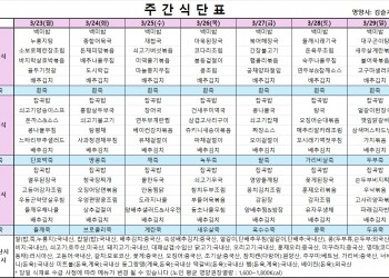 식단표 3월23일~3월29일